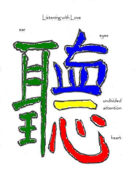 Donna and i had a great time at the CRCC Marriage Matters retreat this past weekend. They had asked us to speak about listening and speaking as components of a healthy marriage. The Chinese character to the right means 'to listen', and it nicely lines up with most of the elements of real listening: